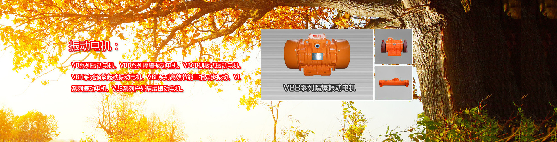 VA、VB系列振动电机、VBH系列频繁起动振动电机、VBL立式振动电机、VBB系列隔爆振动电机、VLB系列户外隔爆振动电机、VBCB侧板式振动电机、VLBL铝壳长杆振动电机