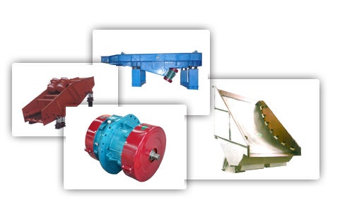 侧板式激振器、直线振动筛、圆振筛、振动给料机、振动料斗、振动输送机、振动放矿机、带式输送机。