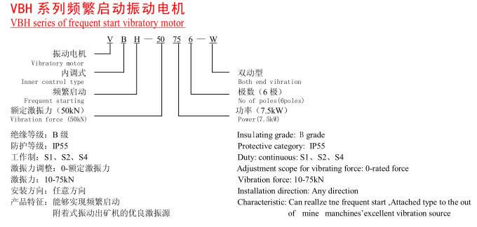 VBH系列频繁起动振动电机,该系列电机适用于矿山井下潮湿、多尘、起停频繁、负载波动大等恶劣环境工作,是矿山井下留矿法采场、充填法采场、采场集矿溜井、阶段溜井、主溜井及冶金、化工、煤炭、港口的地面矿槽、矿仓等场所使用的附着式振动出矿机的优良激振源。