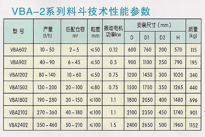 减压锥的配置:当选用VBA1203和VBA1202以上料斗,且仓容大于50平方米时,应选配相应的减压锥,以免过大的仓压影响料斗的正常运行。减压锥安装在料仓内,焊接要求保持平稳、可靠。
